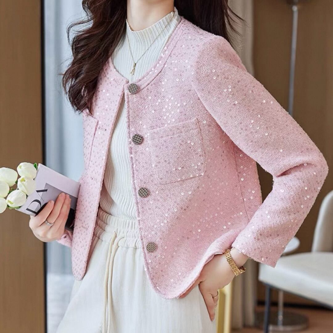 淡い優しいカラーリングにツイードの女性らしさが魅力の1着。