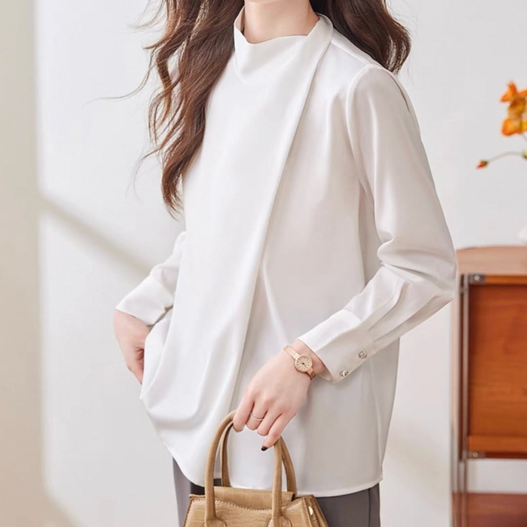 上品な印象を与えるスタンドカラーと、七分袖が絶妙なバランスを実現したシャツ。