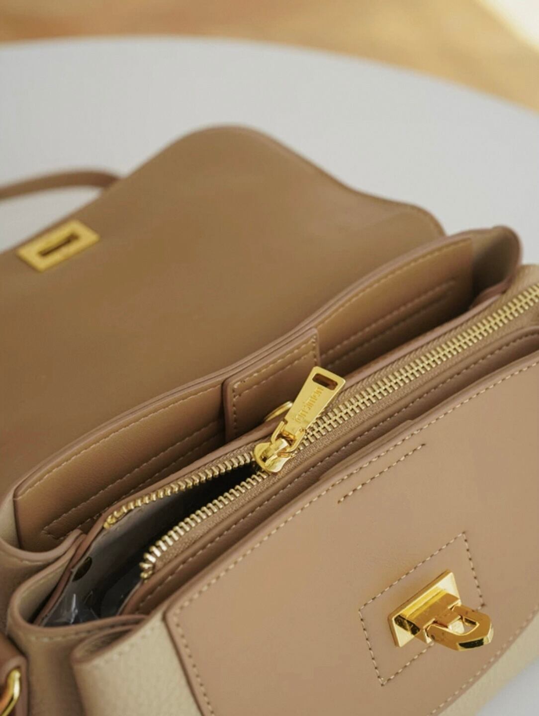 ダブルファスナーで開閉もスムーズ、トップハンドルとショルダーストラップ付きで、シーンに合わせて持ち方を変えられます。