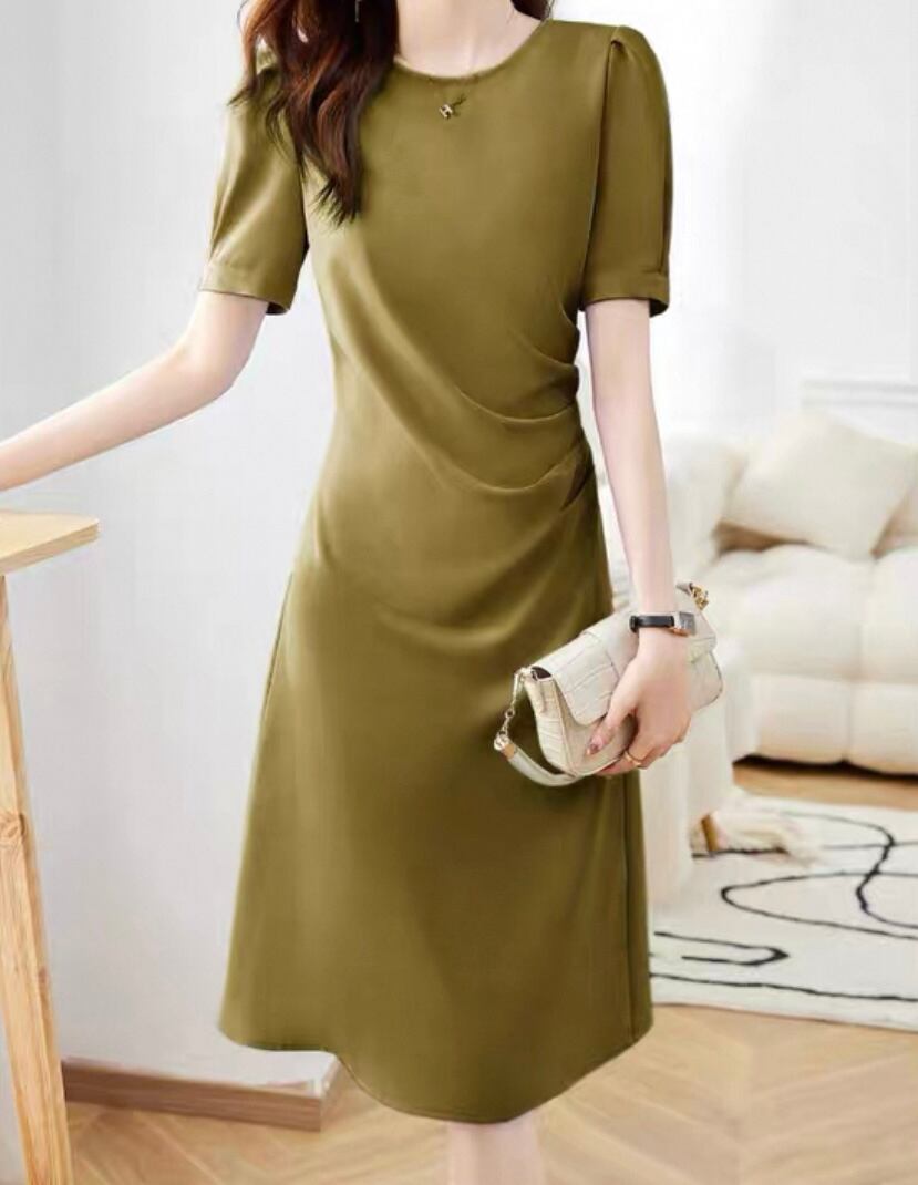 肩が控えめにカッティングされており、肌見せデザインが女性らしさを引き立てます。ご着用いただきやすいAラインシルエット。
