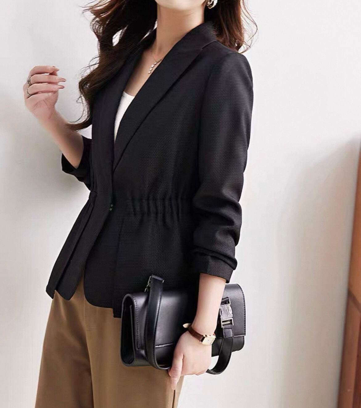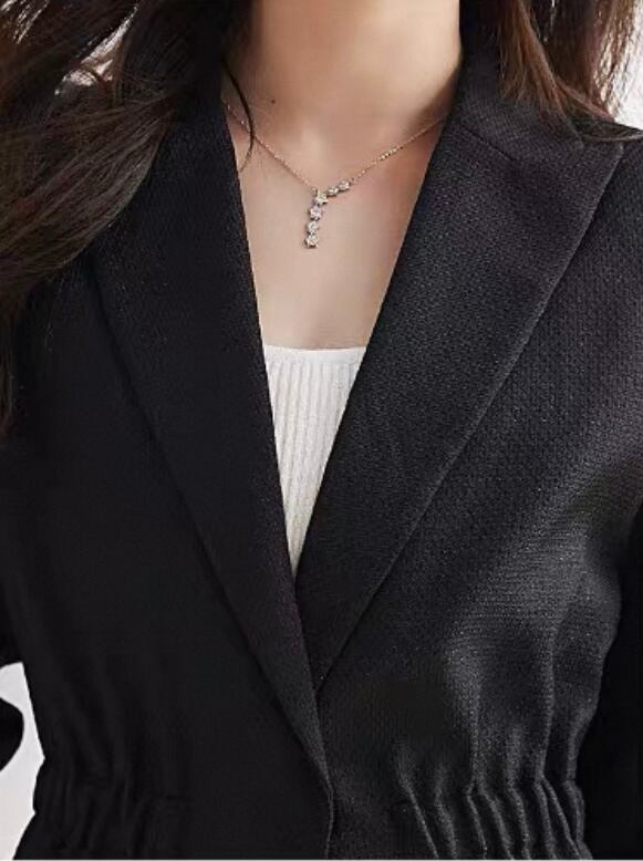 程よく体にフィットするシルエットで、女性らしい上品なスタイルを演出します。