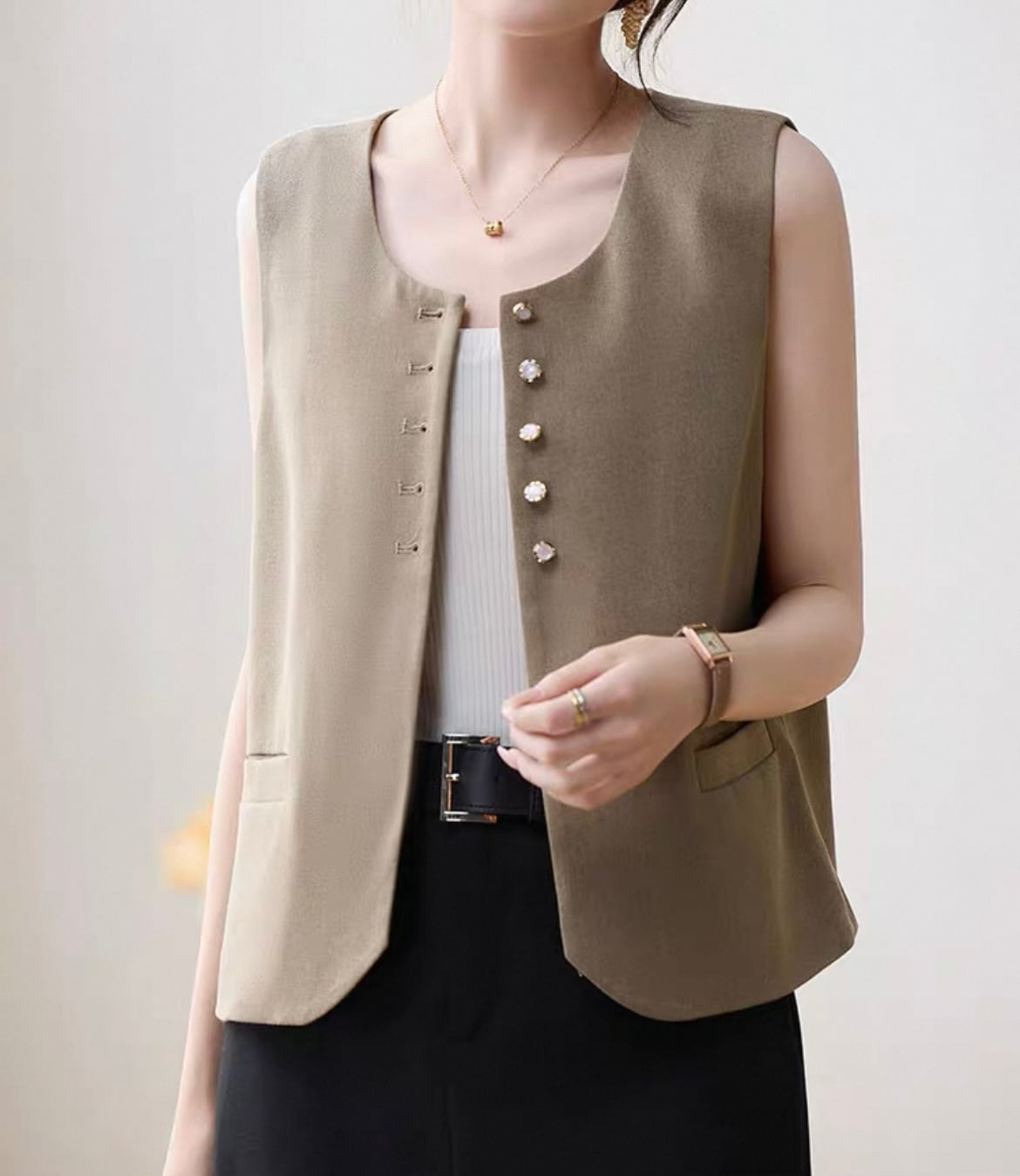 Camel colors bijou button sleeveless jacket 00120