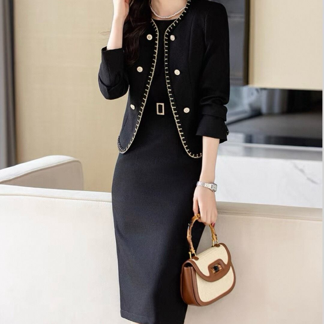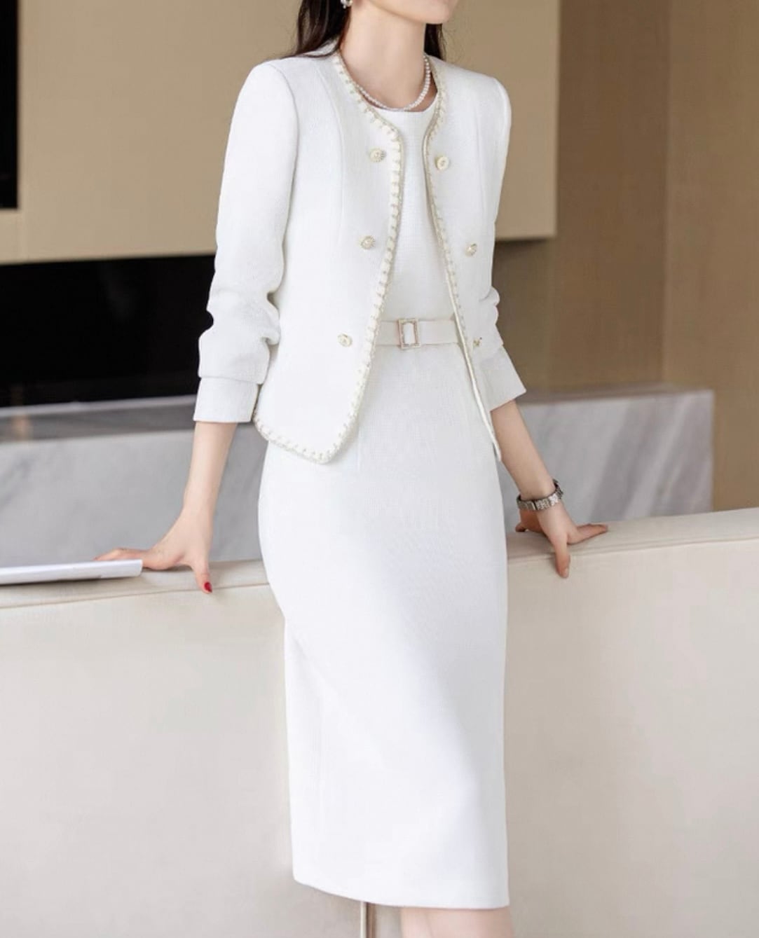Stitch design button tweed jacket and pencil dress setup 00122