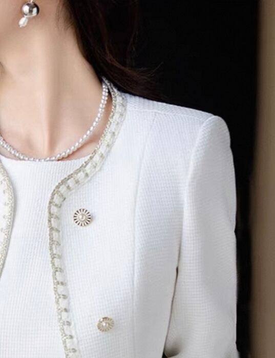 上品な印象を与えながら、女性らしさ、華やかさをもったセットアップです。