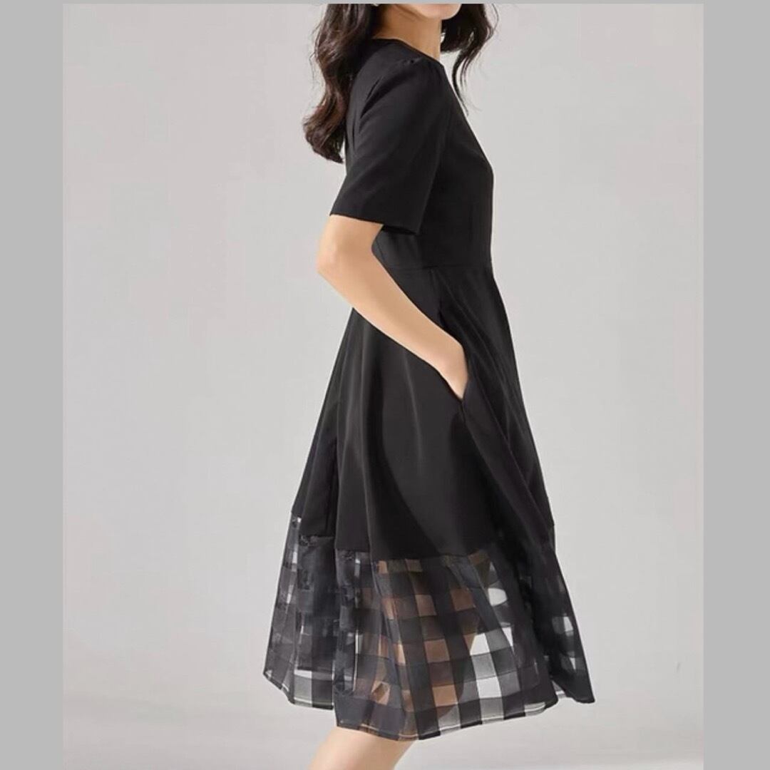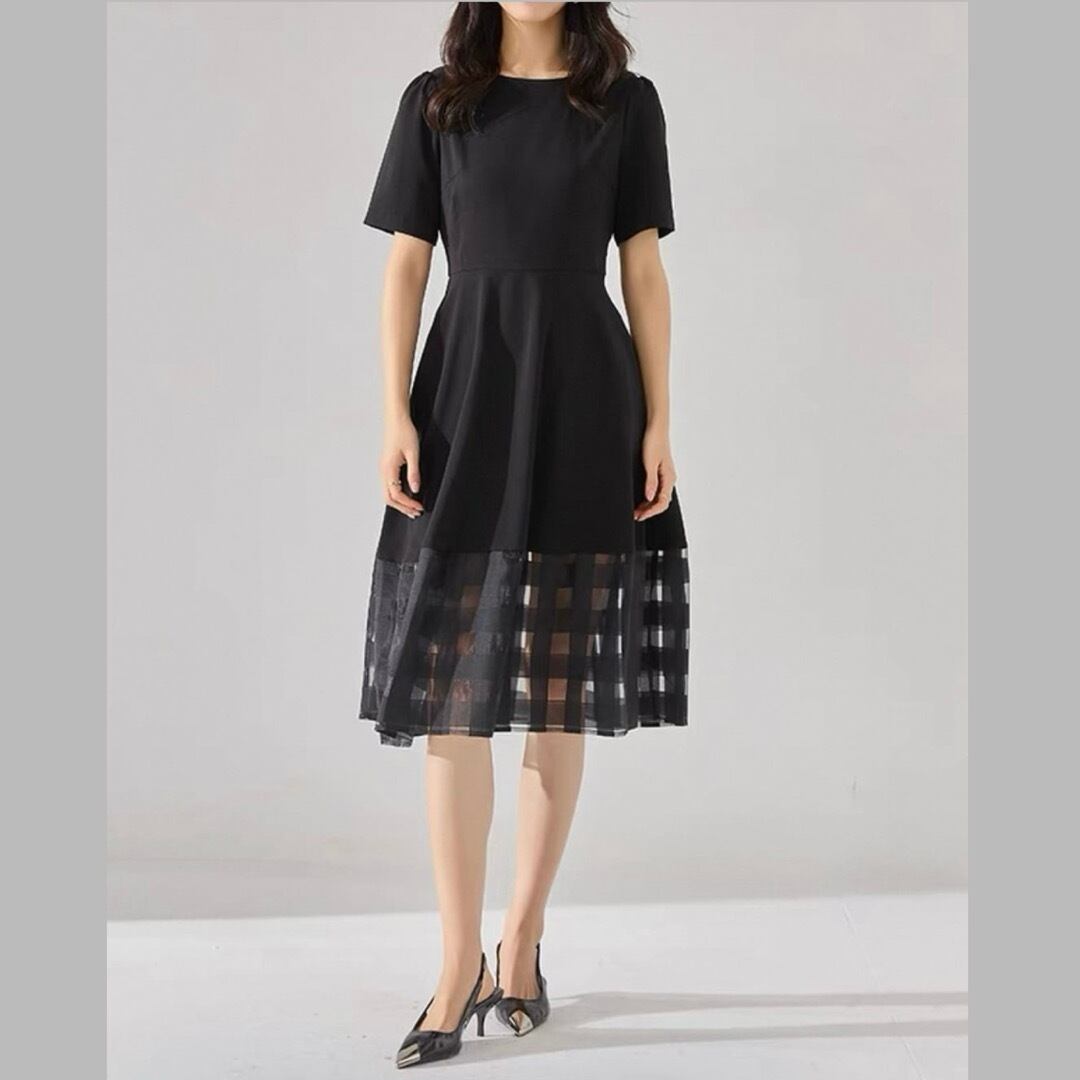シンプルな半袖デザインに、シースルーのギンガムチェック切替がアクセント。
