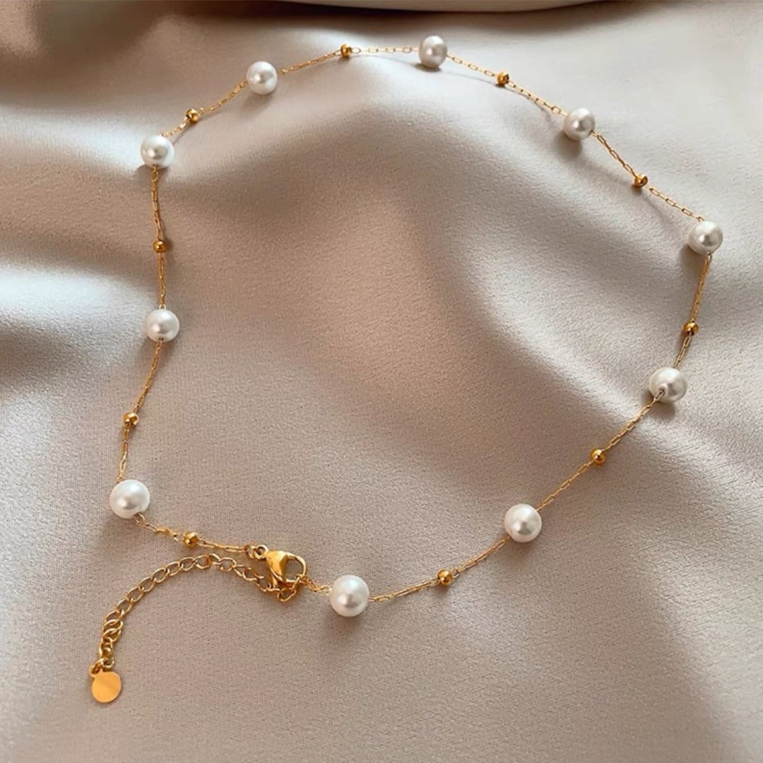 チェーン部分がデコルテの抜け感を演出し、スキンジュエリーのようなニュアンス感を感じられる華やかなネックレスです。