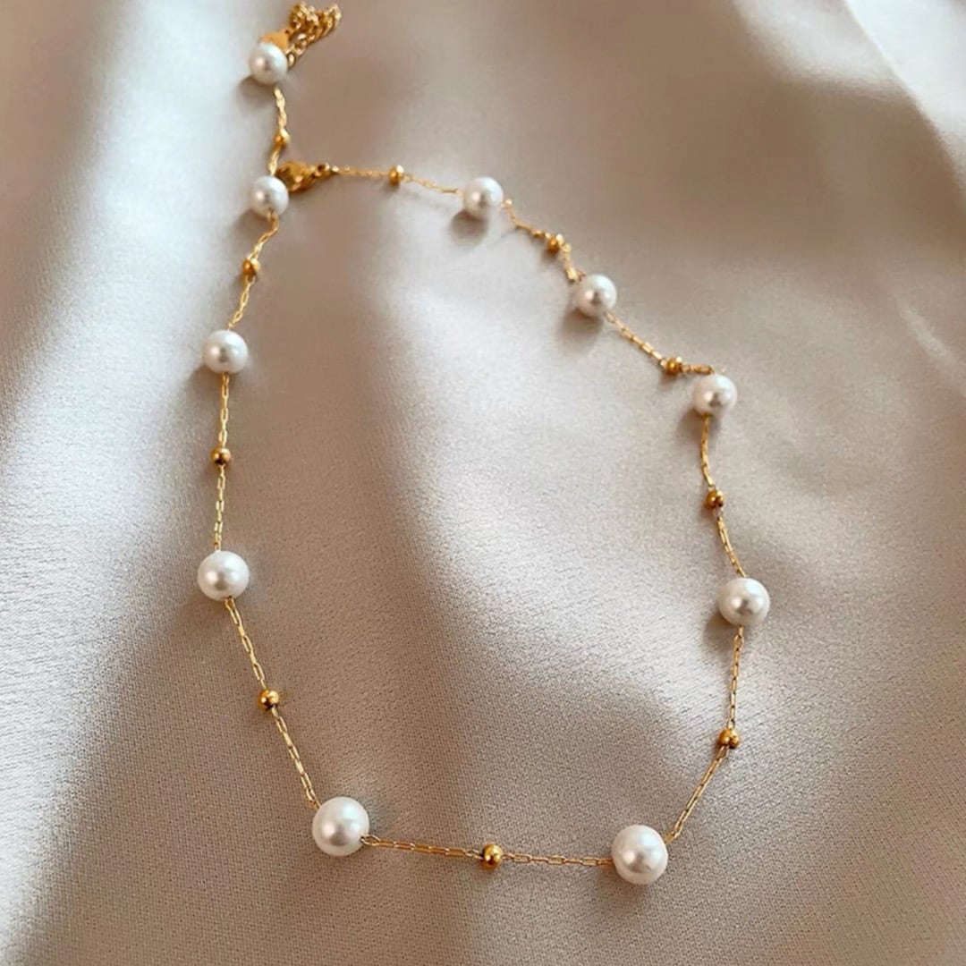 華奢でありながら存在感のあるメタルボールとパールの上品な組み合わせがエレガント。