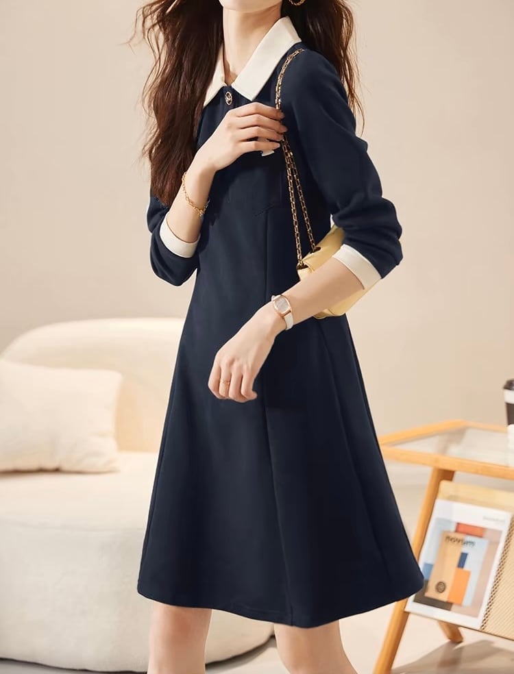 ホワイトの襟が爽やかなポロシャツスタイルのドレス。