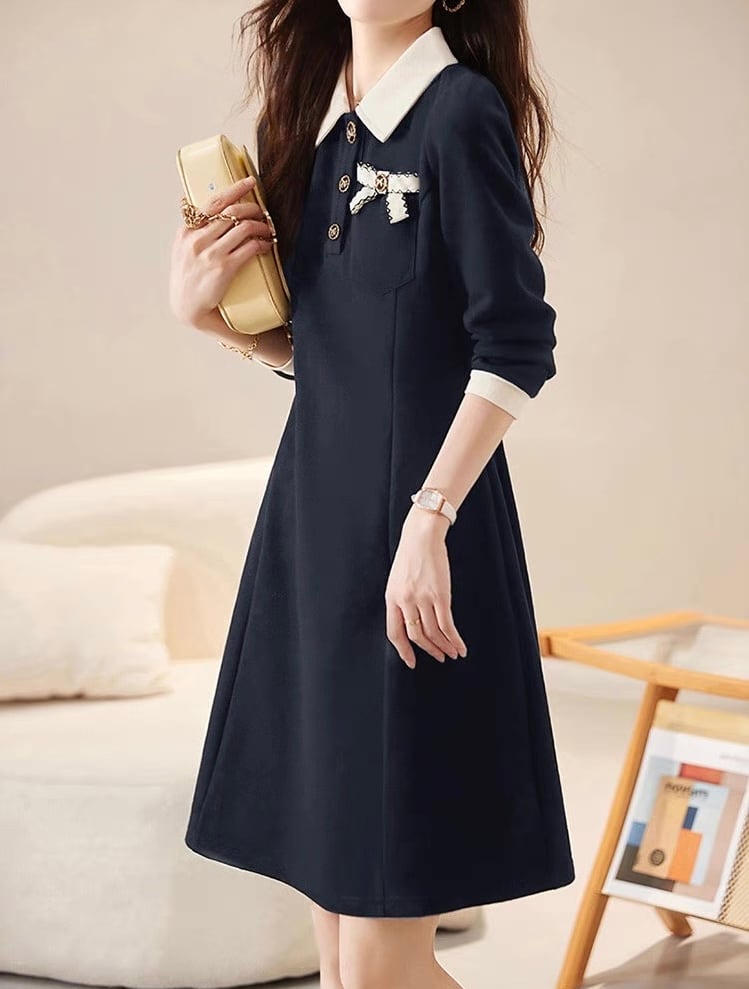 Polo style bi color three quarter sleeve dress with ribbon 00164