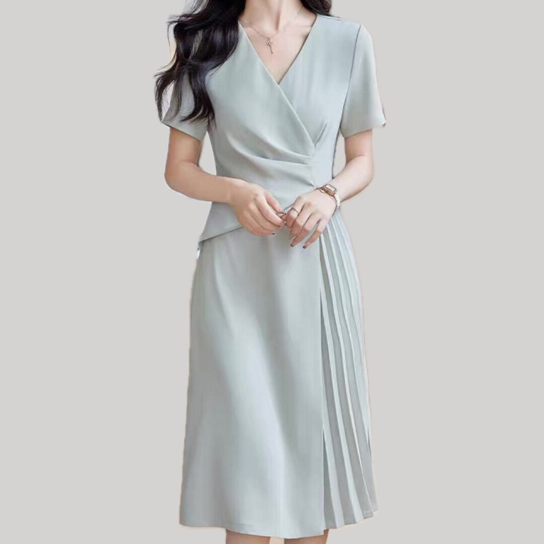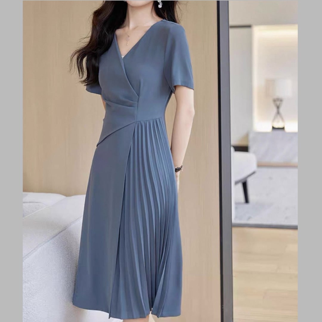 腰から裾にかけてのプリーツデザインが個性的、かつフォーマルな雰囲気もありエレガントです。