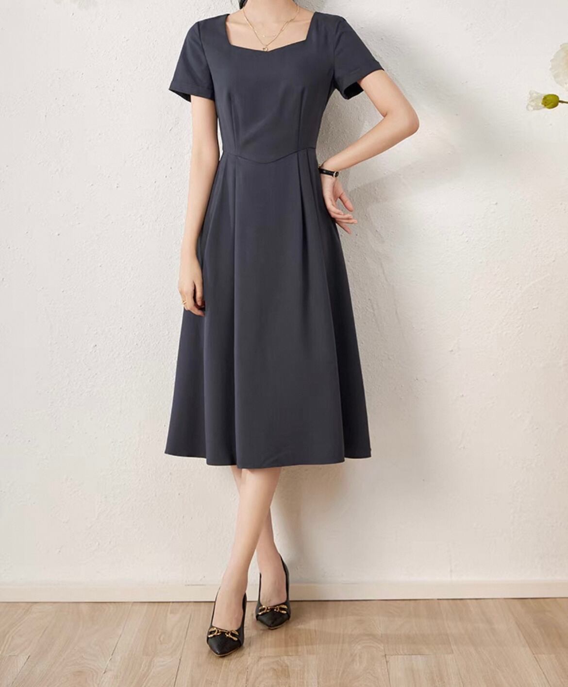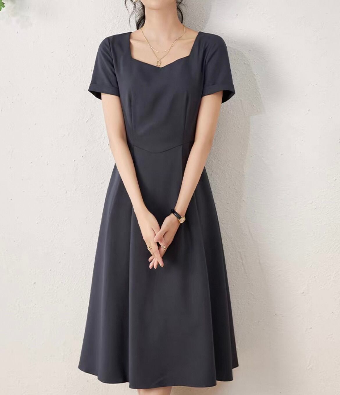 Aラインとウエストのデザインがとても女性らしく優雅なシルエットをお楽しみいただけます。