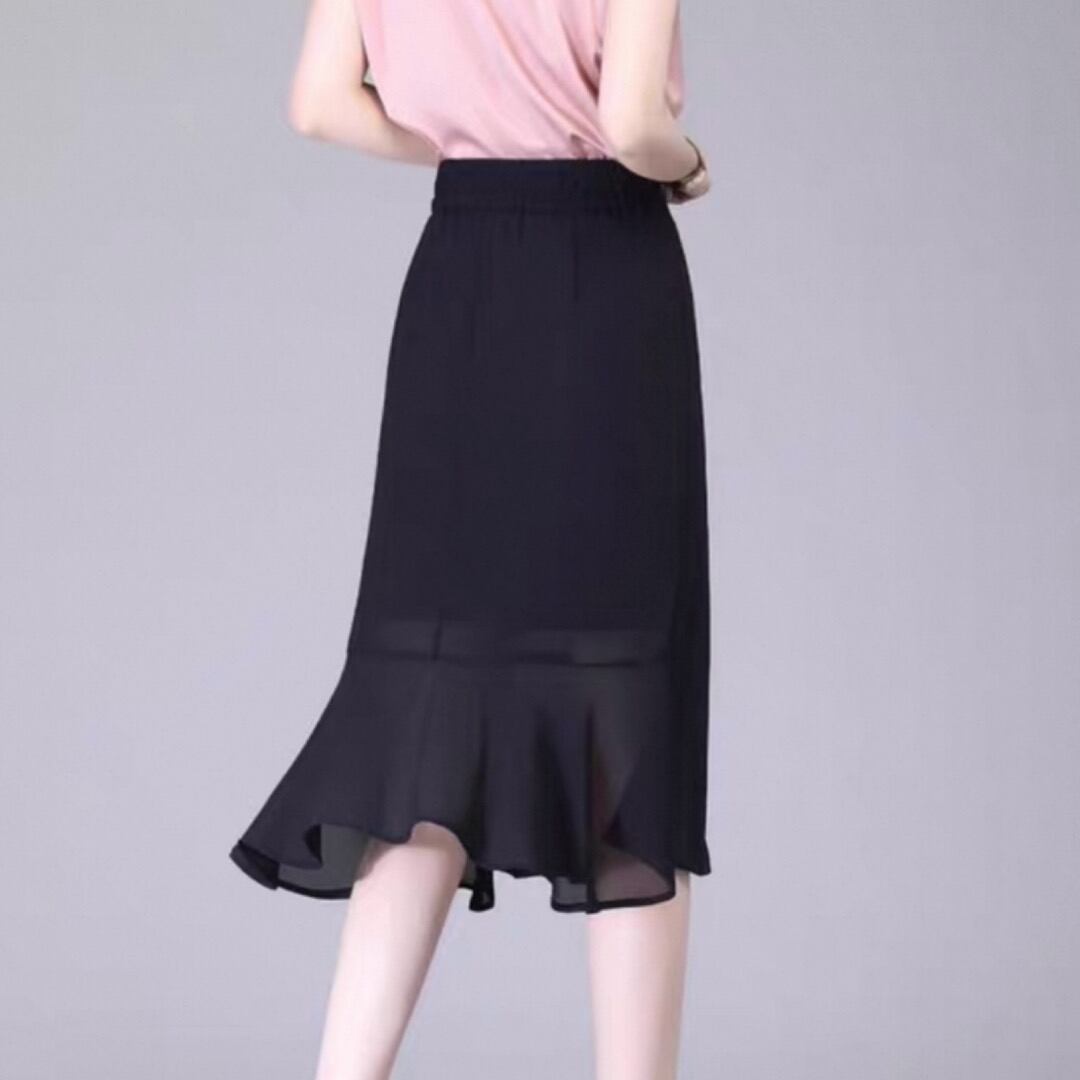 腰から斜めに入ったデザインや片側の裾の切り返しなど、アシンメトリーなデザインが魅力の1枚。