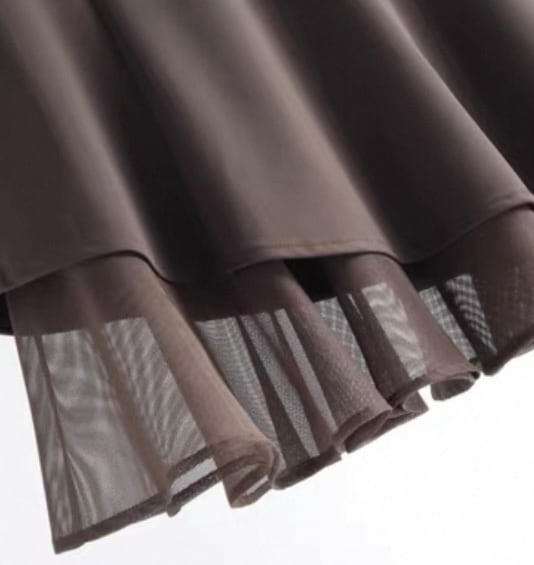 アシンメトリーなデザインで裾に一部チュールがあしらわれています。