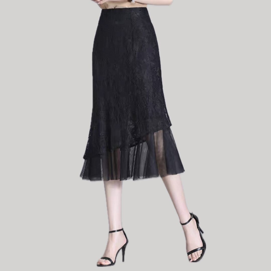 Mermaid silhouette lace and tulle fabric skirt 00233