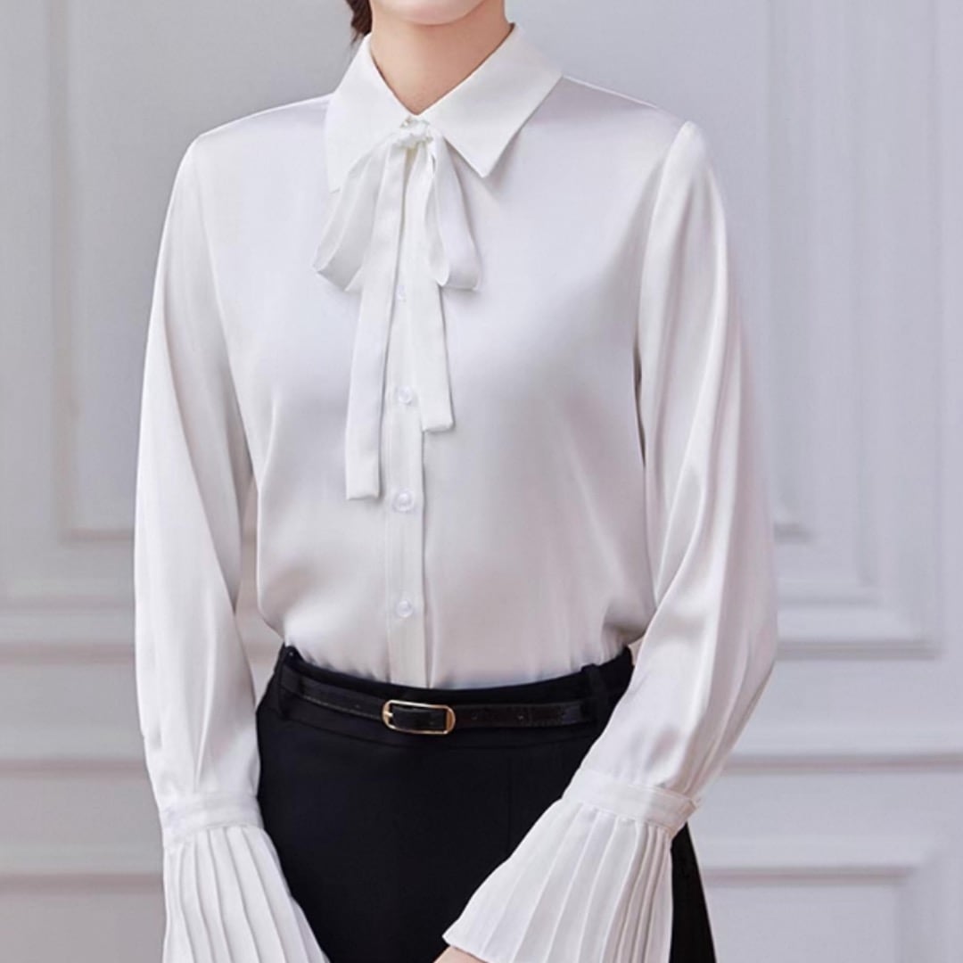 潔い印象の白い生地にボウタイデザインのバランスが絶妙な1枚。