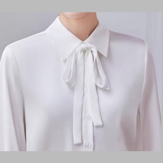 White bow tie ribbon pleated cuff blouse 00242
