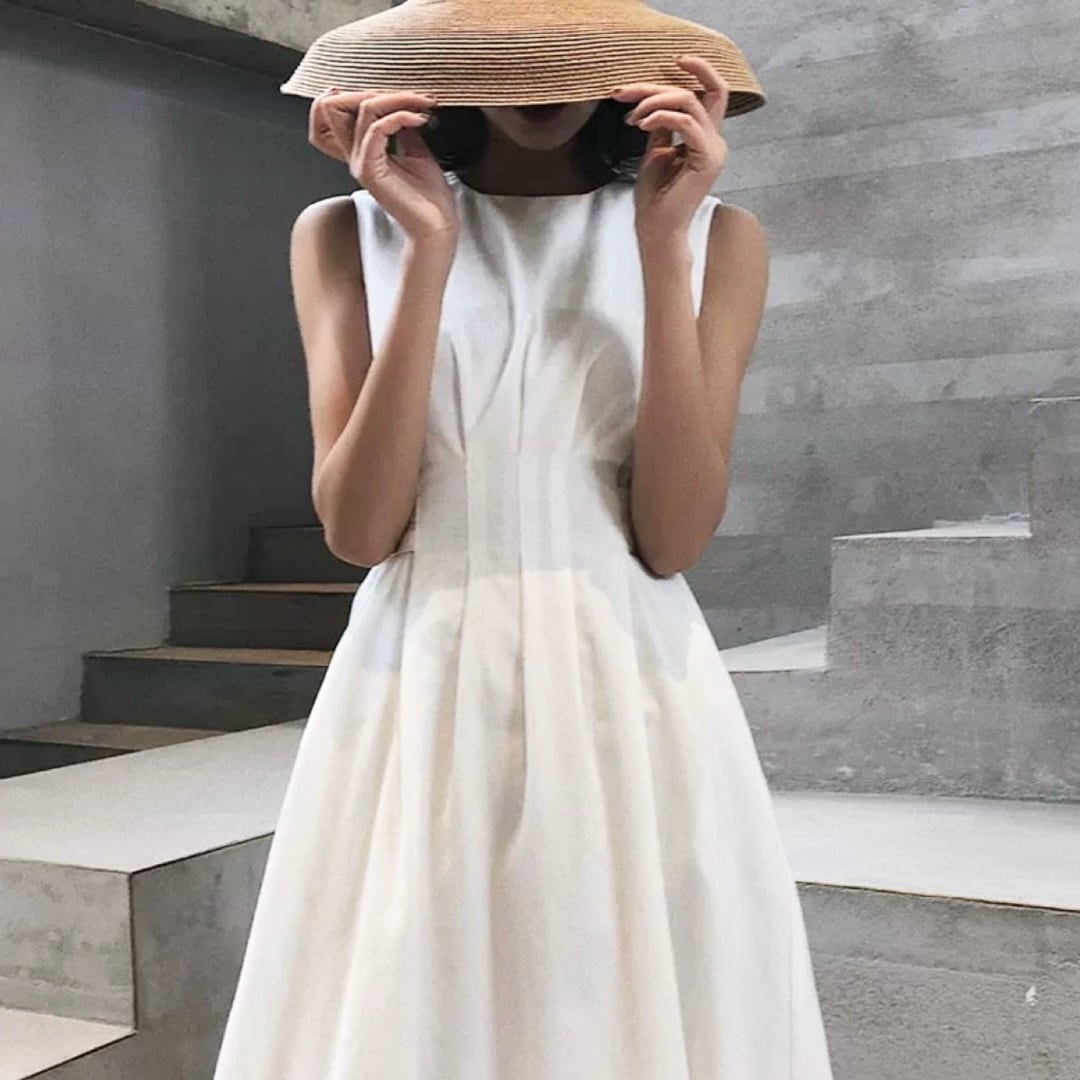 ウエストラインがキュッとボタンで留まったデザイン。全方位においてとても綺麗なシルエットでご着用いただけます。