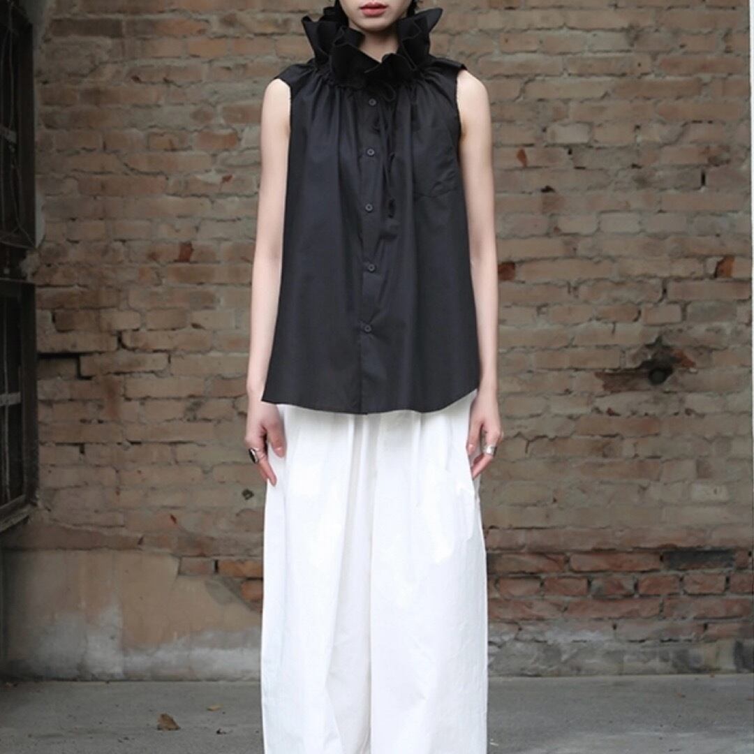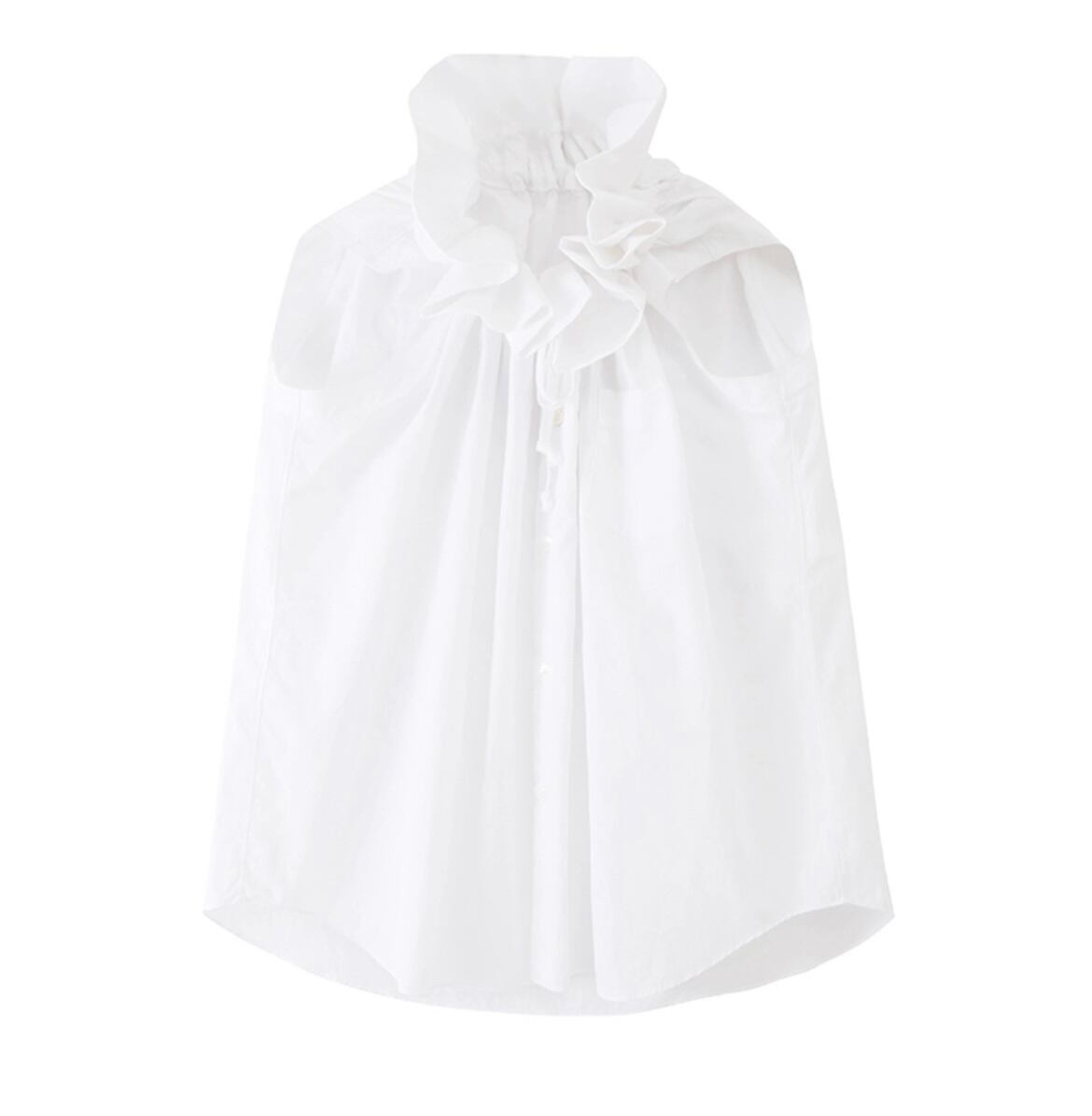 スッキリとしたシャツデザインで、フェミニンかつスタイリッシュな印象です。