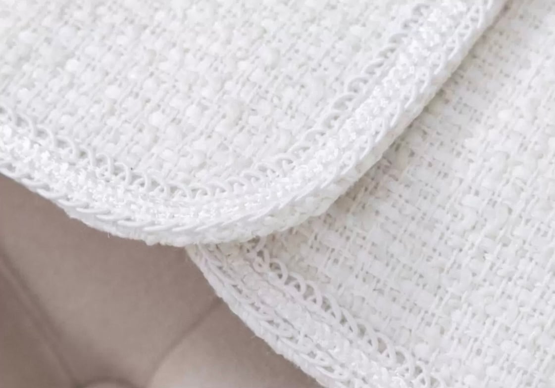 清楚で上品なツイードに金ボタンがとても華やかに映える1着。
