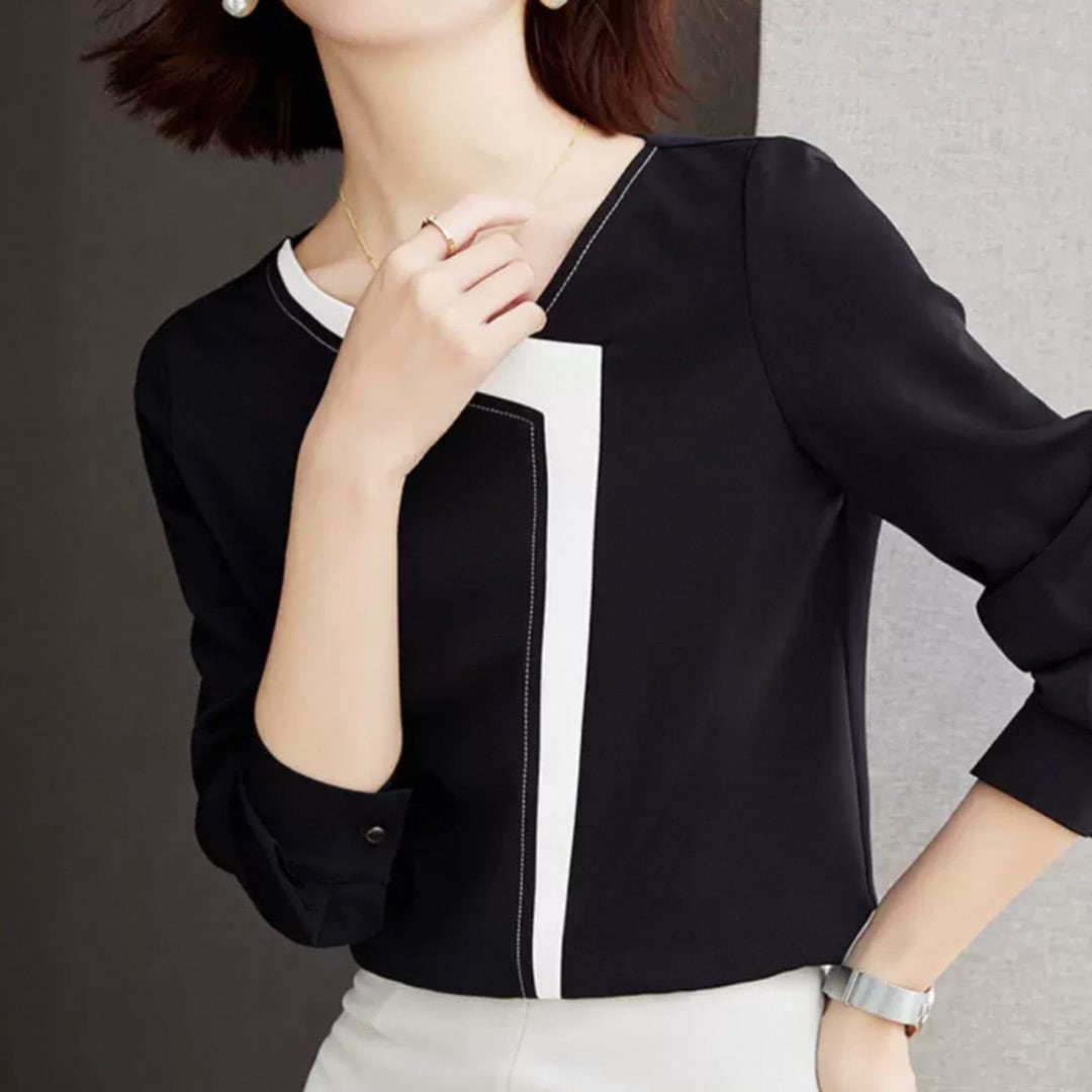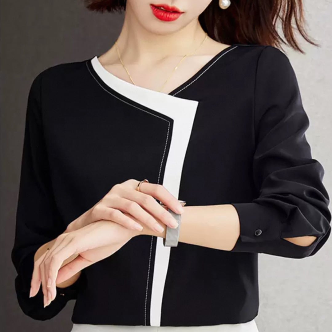 鎖骨が上品に見える胸元のカッティングが素敵な一枚。