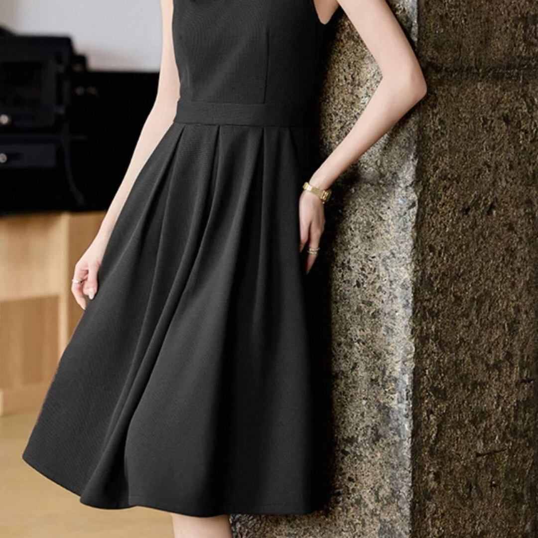 Decolletage V cutting sleeveless waffle flared dress 00072