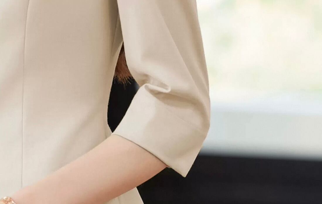 七分袖ジャケットは、季節の変わり目にも最適なアイテムです。